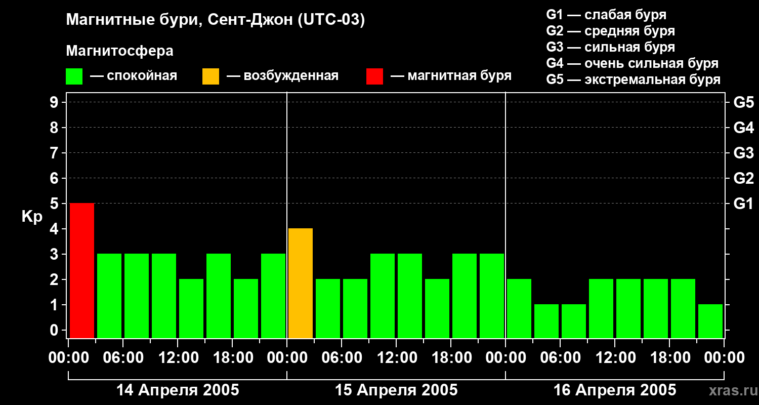 Магнитные бури в Сент-Джоне — 16 апреля 2005 года