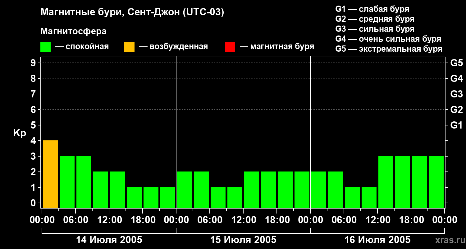 Магнитные бури в Сент-Джоне — 16 июля 2005 года