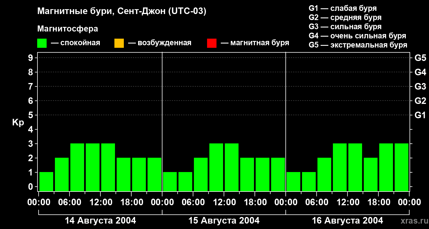 Магнитные бури в Сент-Джоне — 16 августа 2004 года