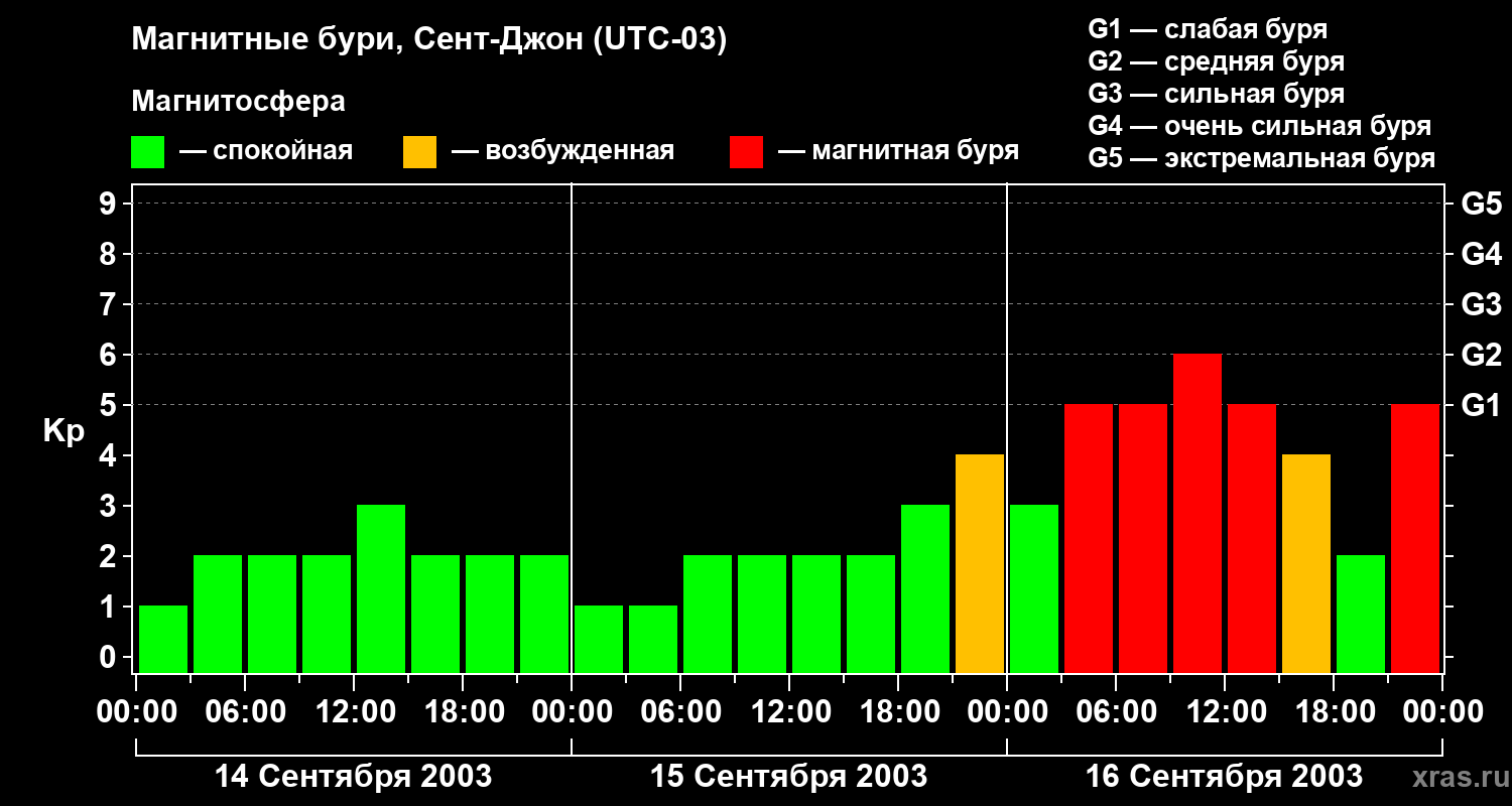 Магнитные бури в Сент-Джоне — 16 сентября 2003 года