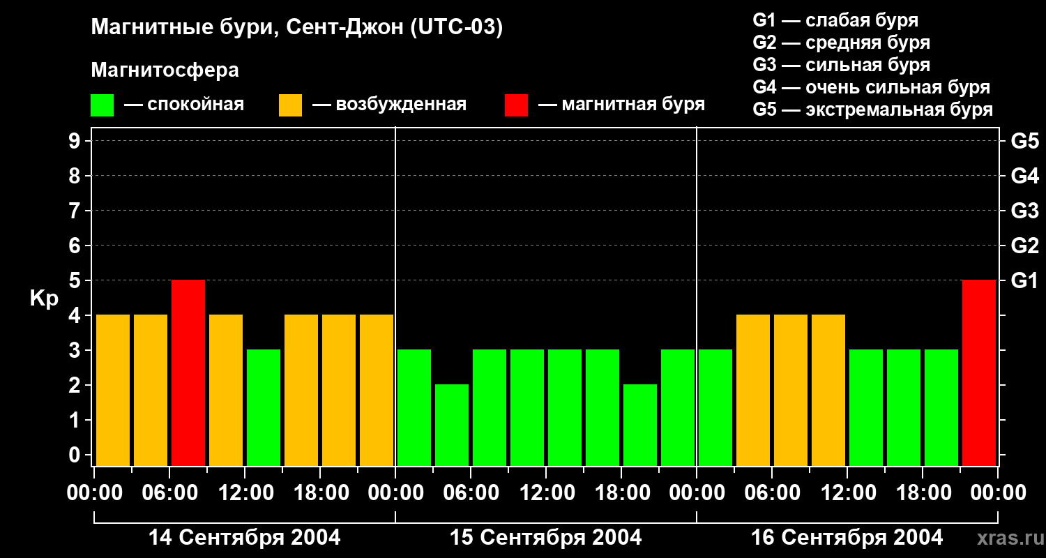 Магнитные бури в Сент-Джоне — 16 сентября 2004 года