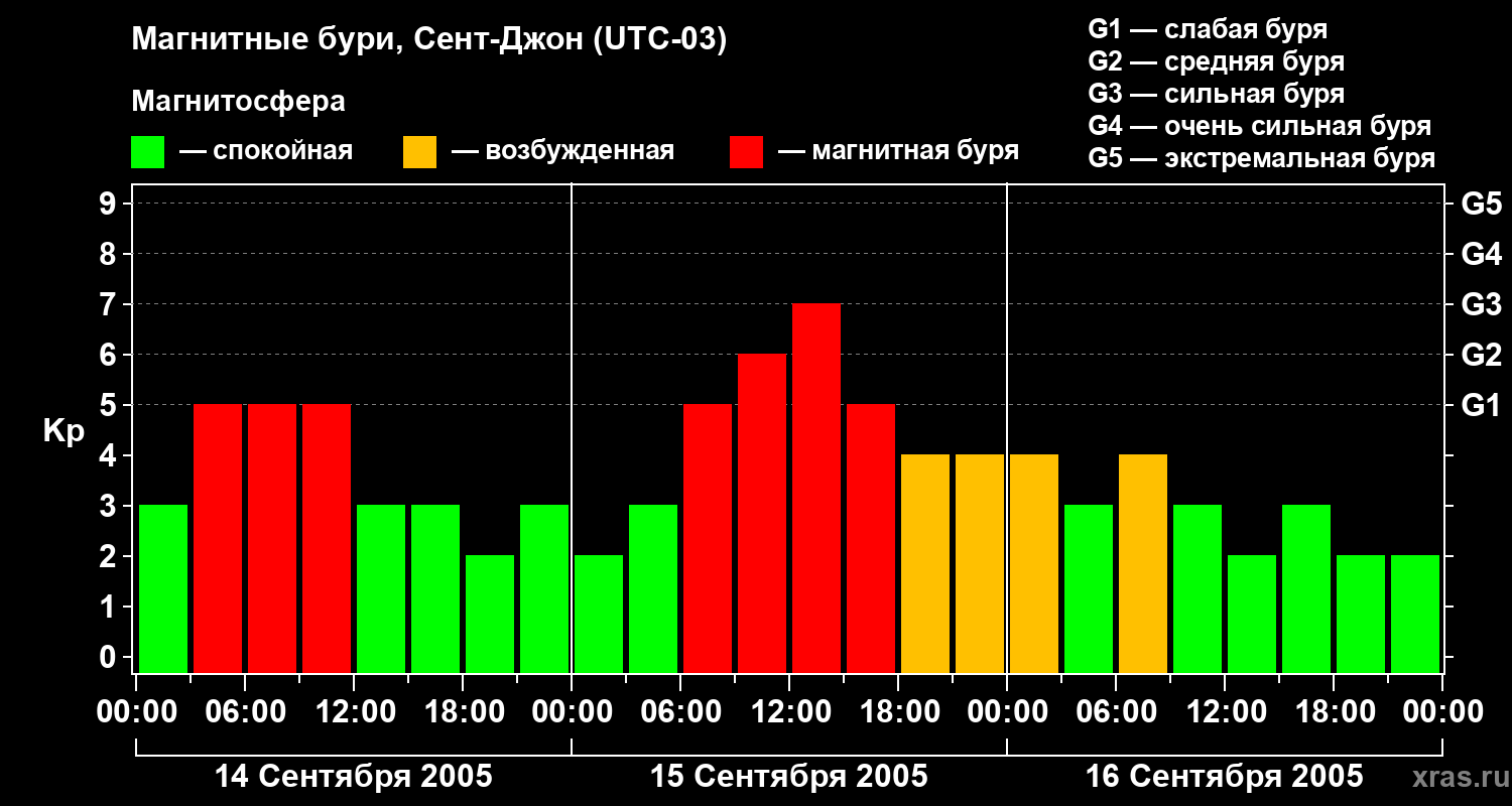 Магнитные бури в Сент-Джоне — 16 сентября 2005 года