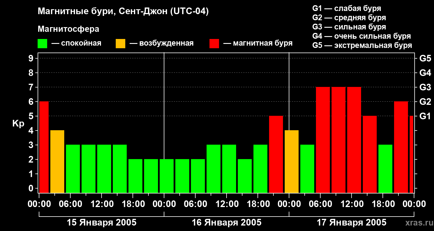 Магнитные бури в Сент-Джоне 17 января 2005 года