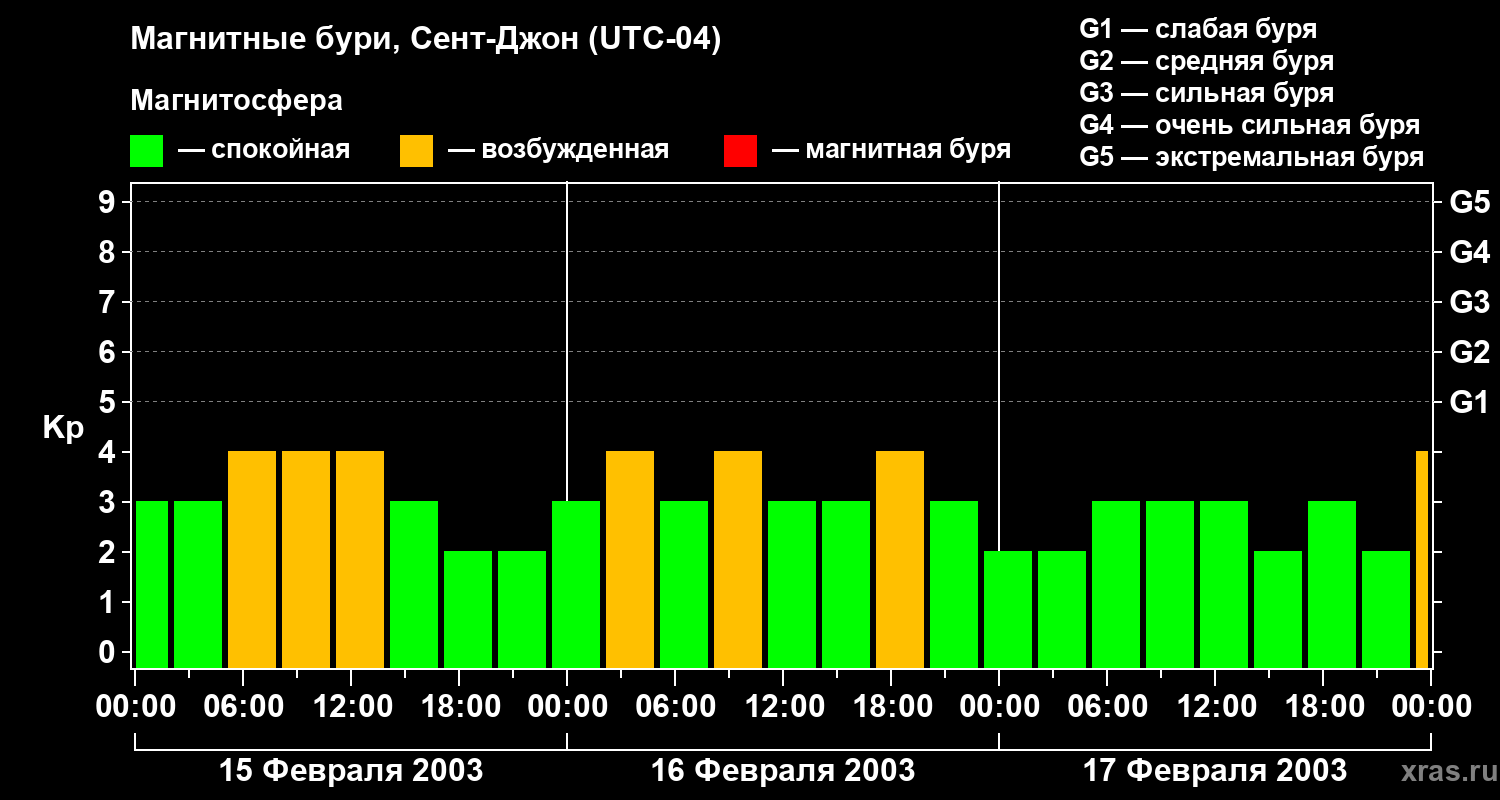 Магнитные бури в Сент-Джоне — 17 февраля 2003 года