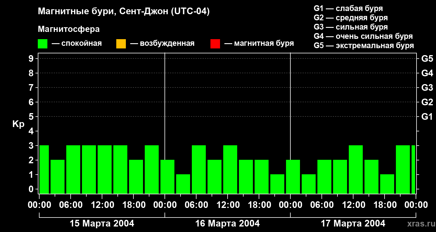 Магнитные бури в Сент-Джоне — 17 марта 2004 года