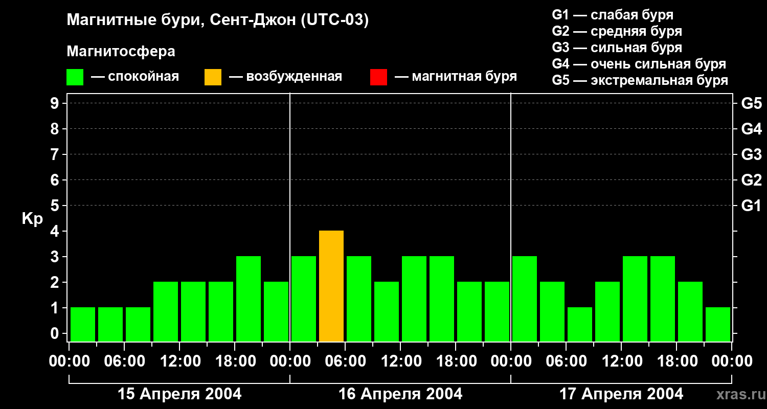 Магнитные бури в Сент-Джоне — 17 апреля 2004 года