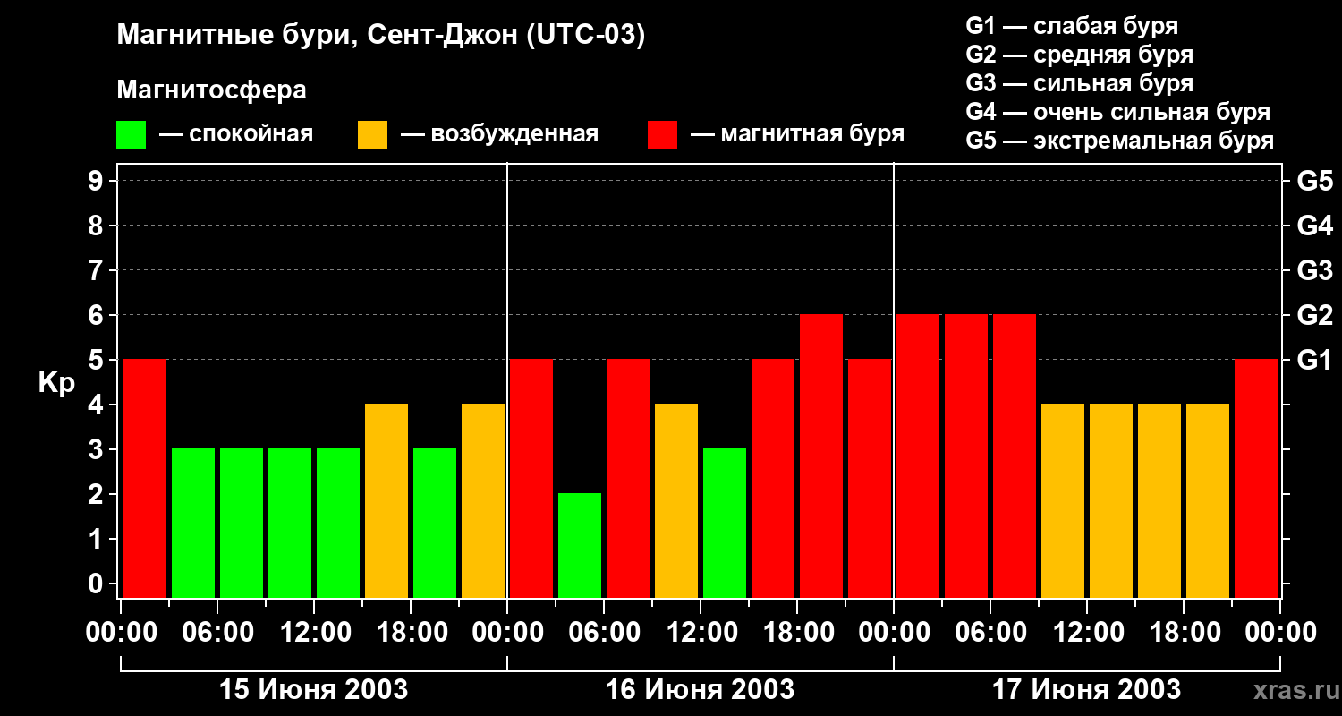 Магнитные бури в Сент-Джоне — 17 июня 2003 года