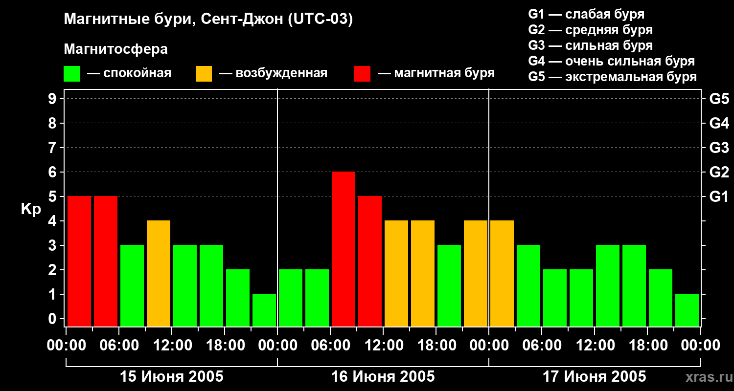 Магнитные бури в Сент-Джоне — 17 июня 2005 года