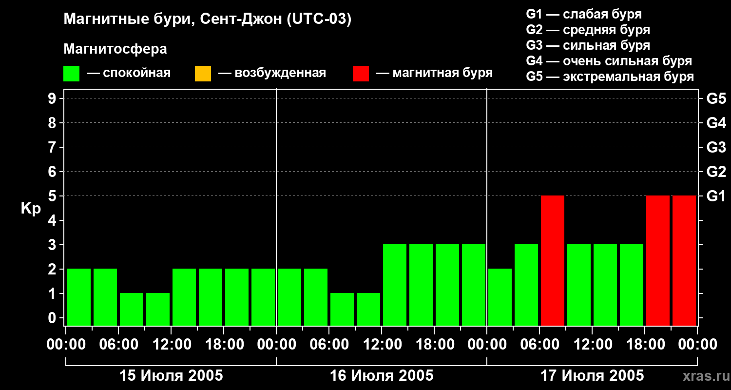 Магнитные бури в Сент-Джоне 17 июля 2005 года