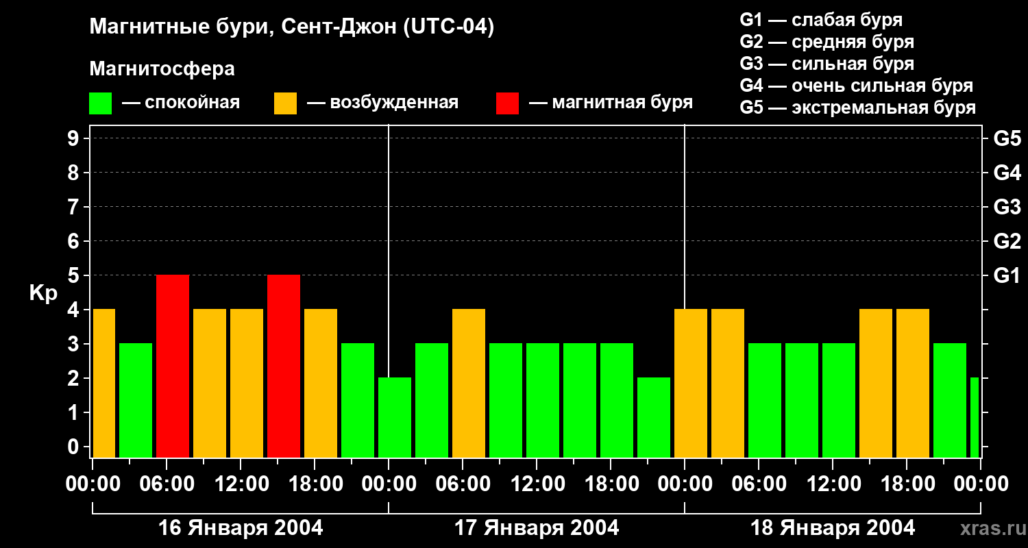 Магнитные бури в Сент-Джоне — 18 января 2004 года