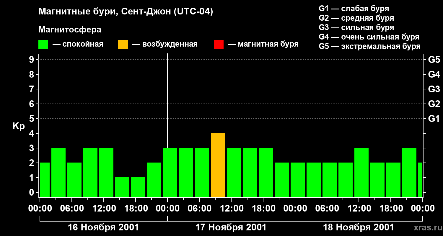 Магнитные бури в Сент-Джоне — 18 ноября 2001 года