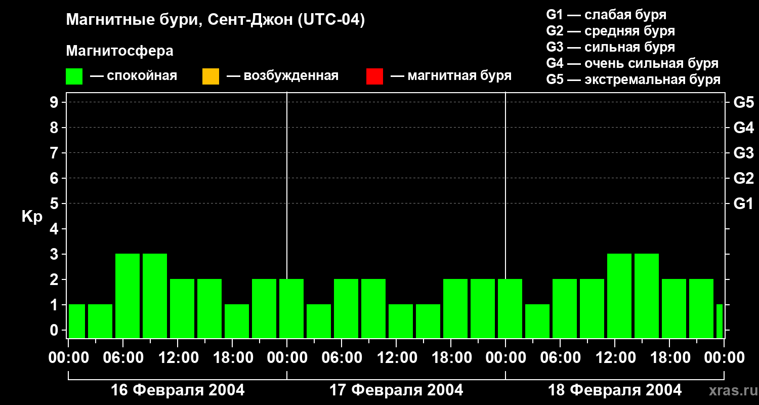 Магнитные бури в Сент-Джоне — 18 февраля 2004 года