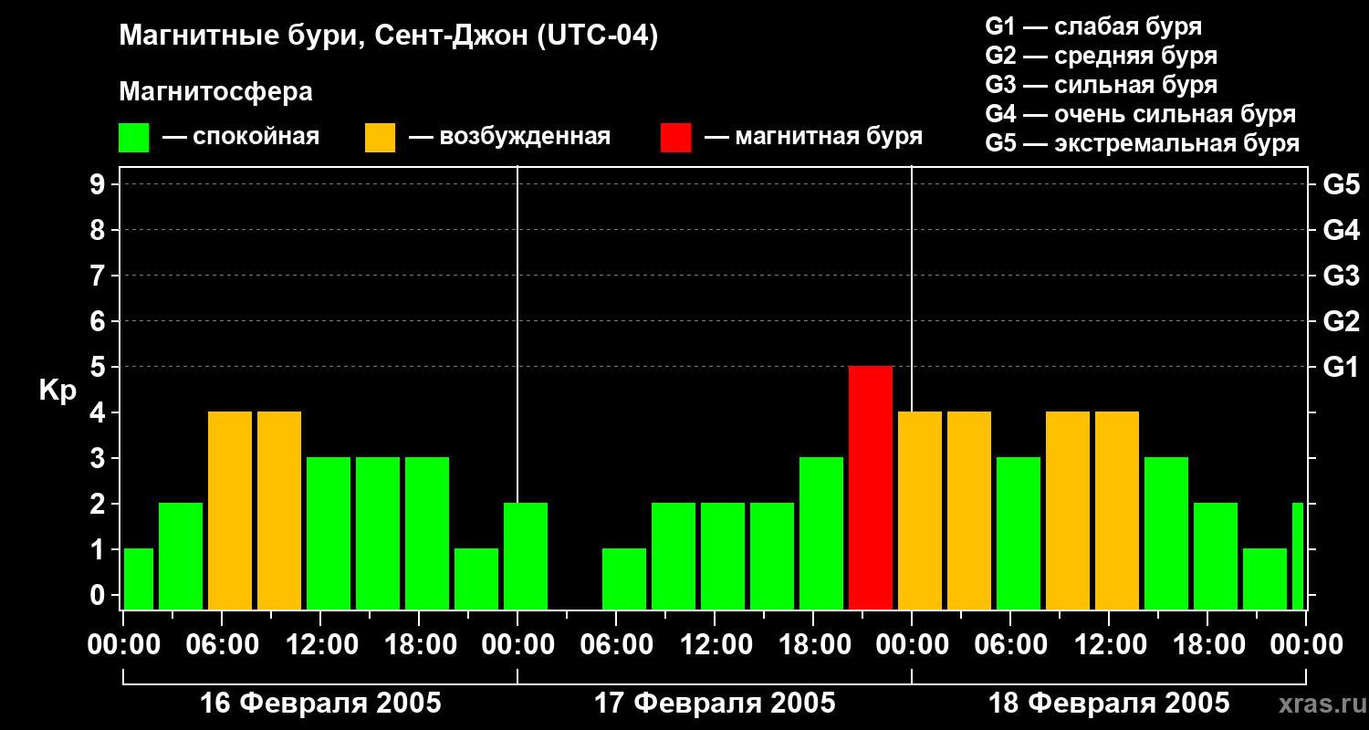 Магнитные бури в Сент-Джоне 18 февраля 2005 года