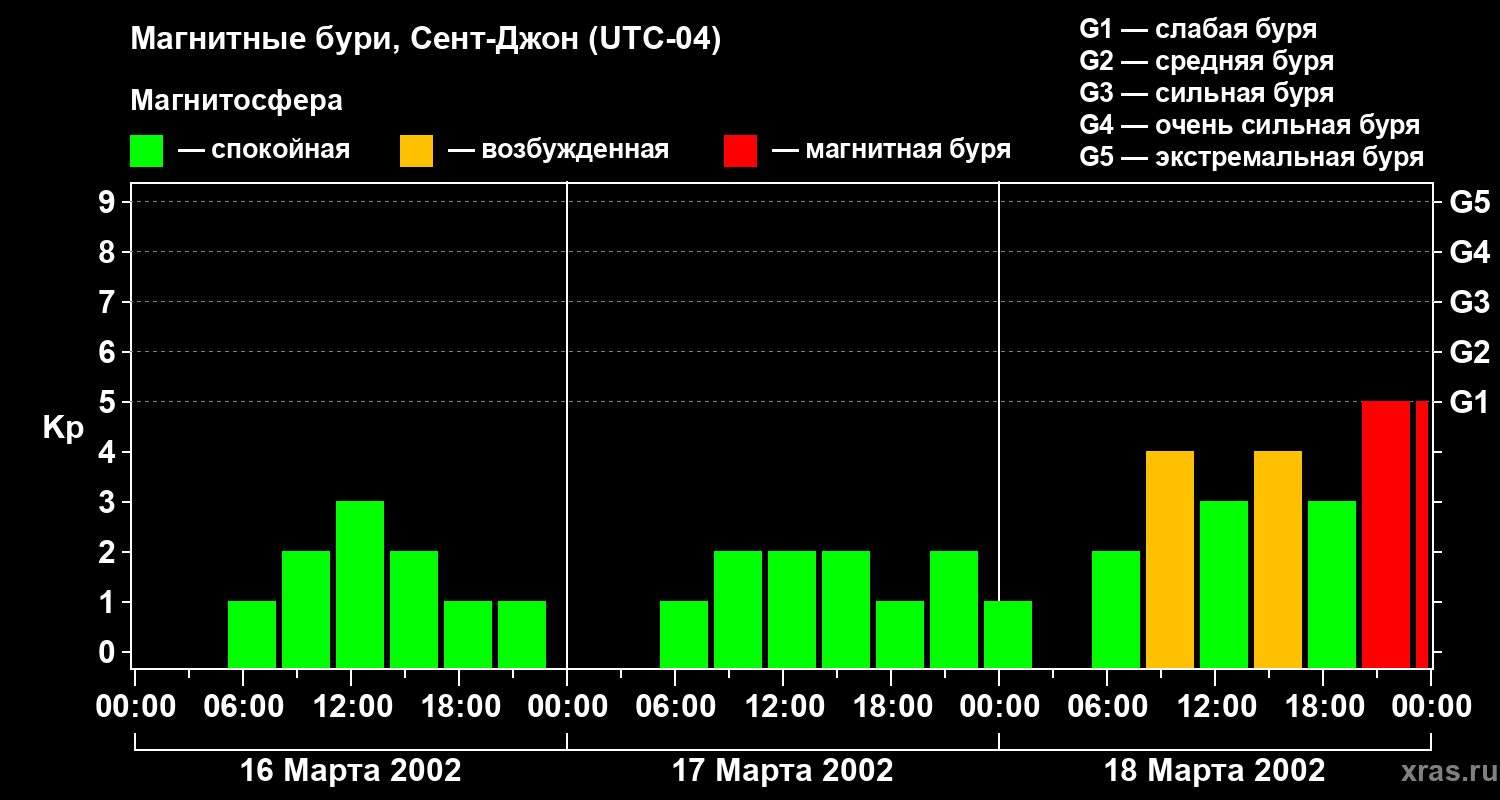 Магнитные бури в Сент-Джоне — 18 марта 2002 года