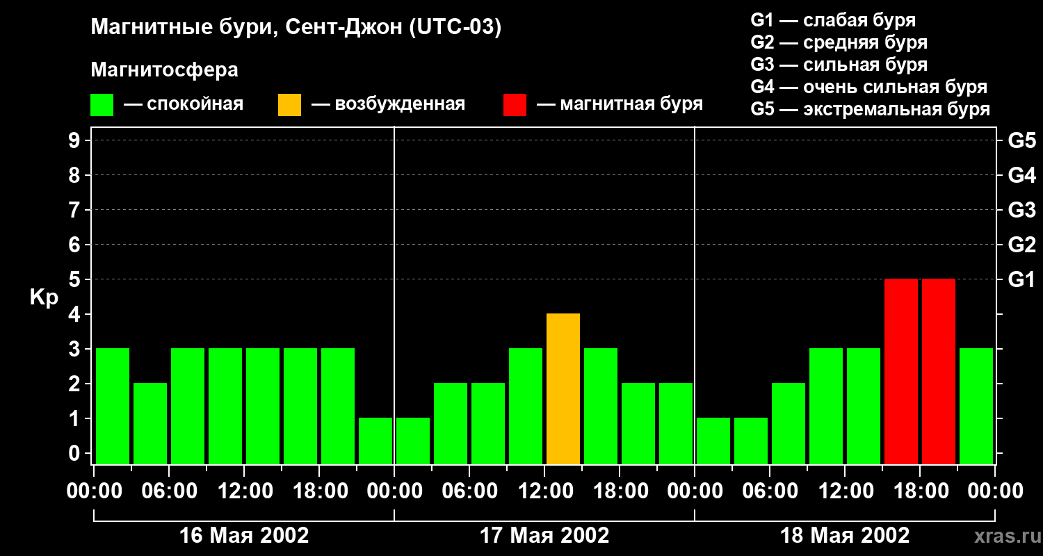 Магнитные бури в Сент-Джоне — 18 мая 2002 года