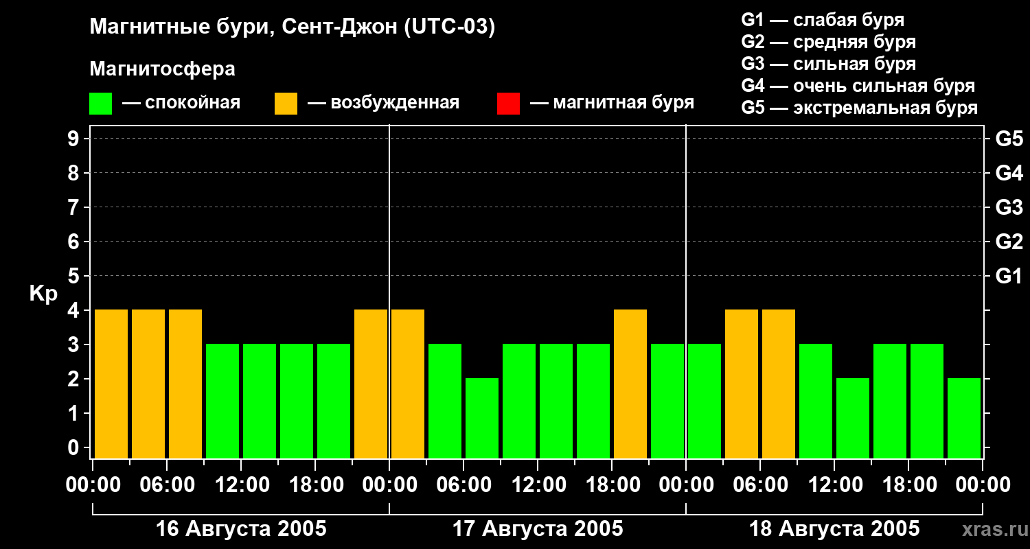 Магнитные бури в Сент-Джоне 18 августа 2005 года