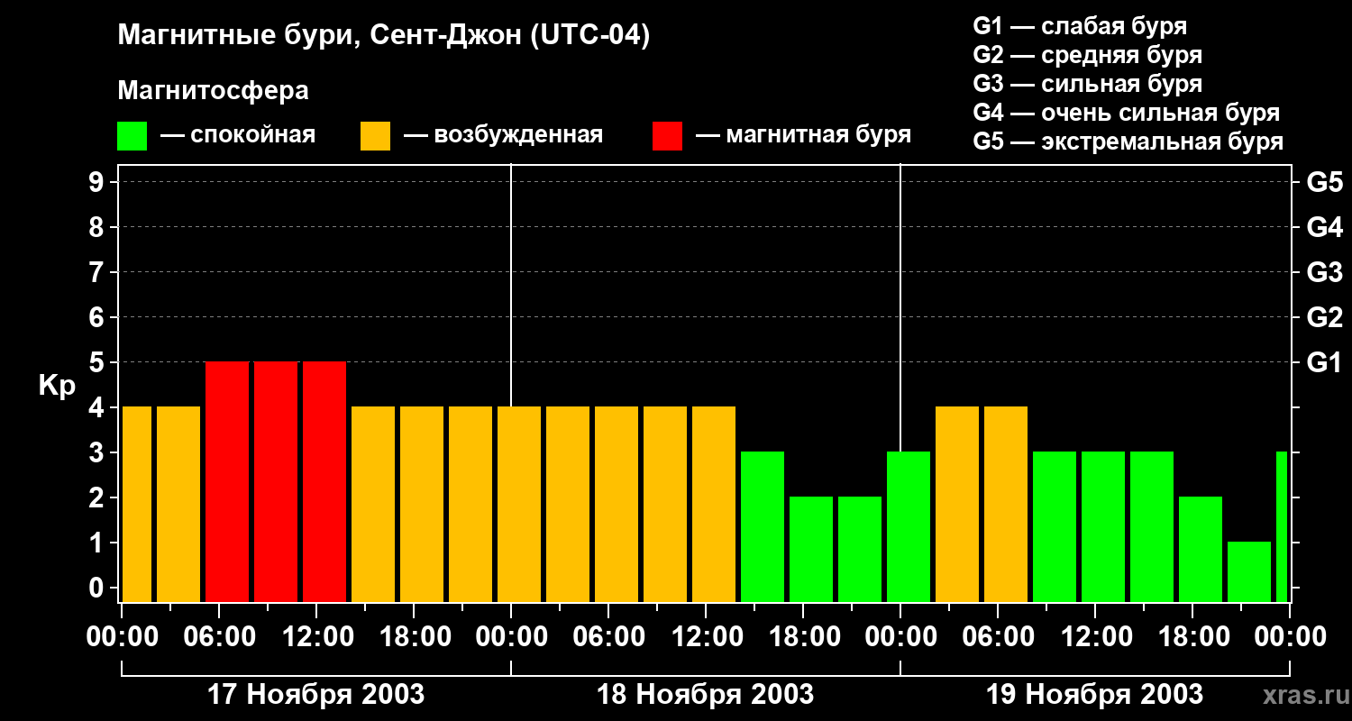 Магнитные бури в Сент-Джоне — 19 ноября 2003 года