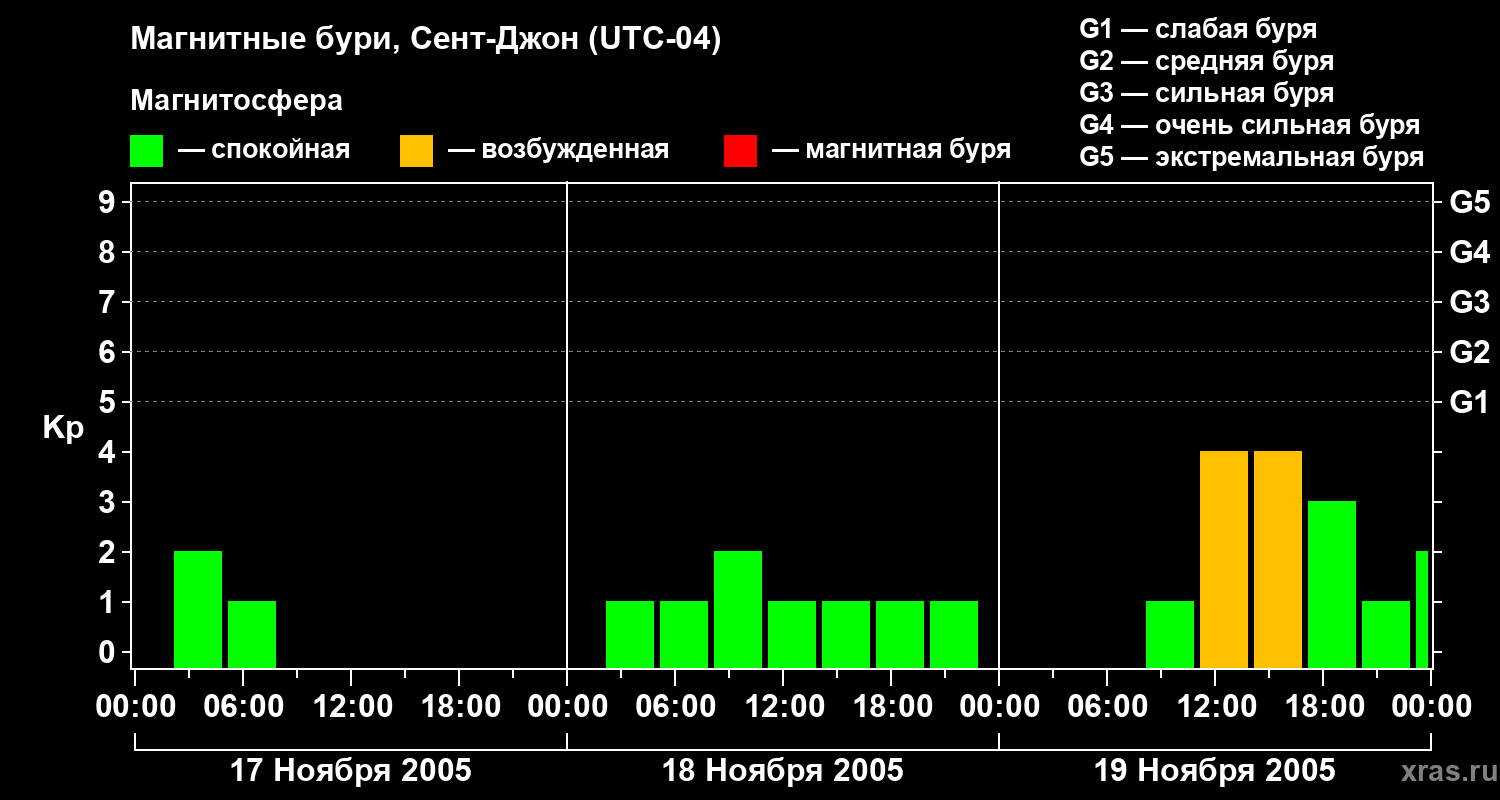 Магнитные бури в Сент-Джоне 19 ноября 2005 года