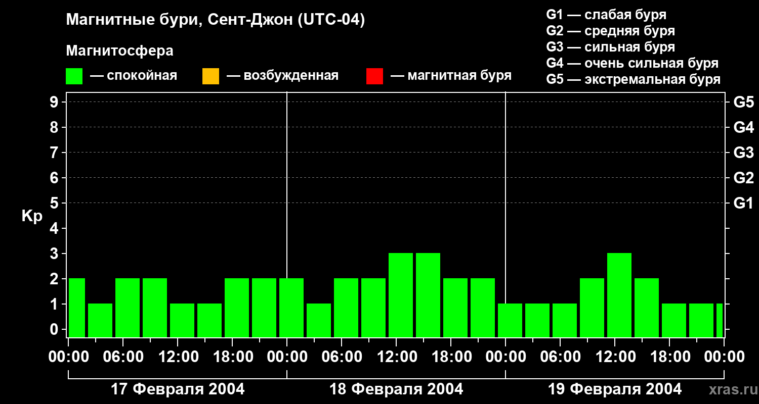 Магнитные бури в Сент-Джоне 19 февраля 2004 года