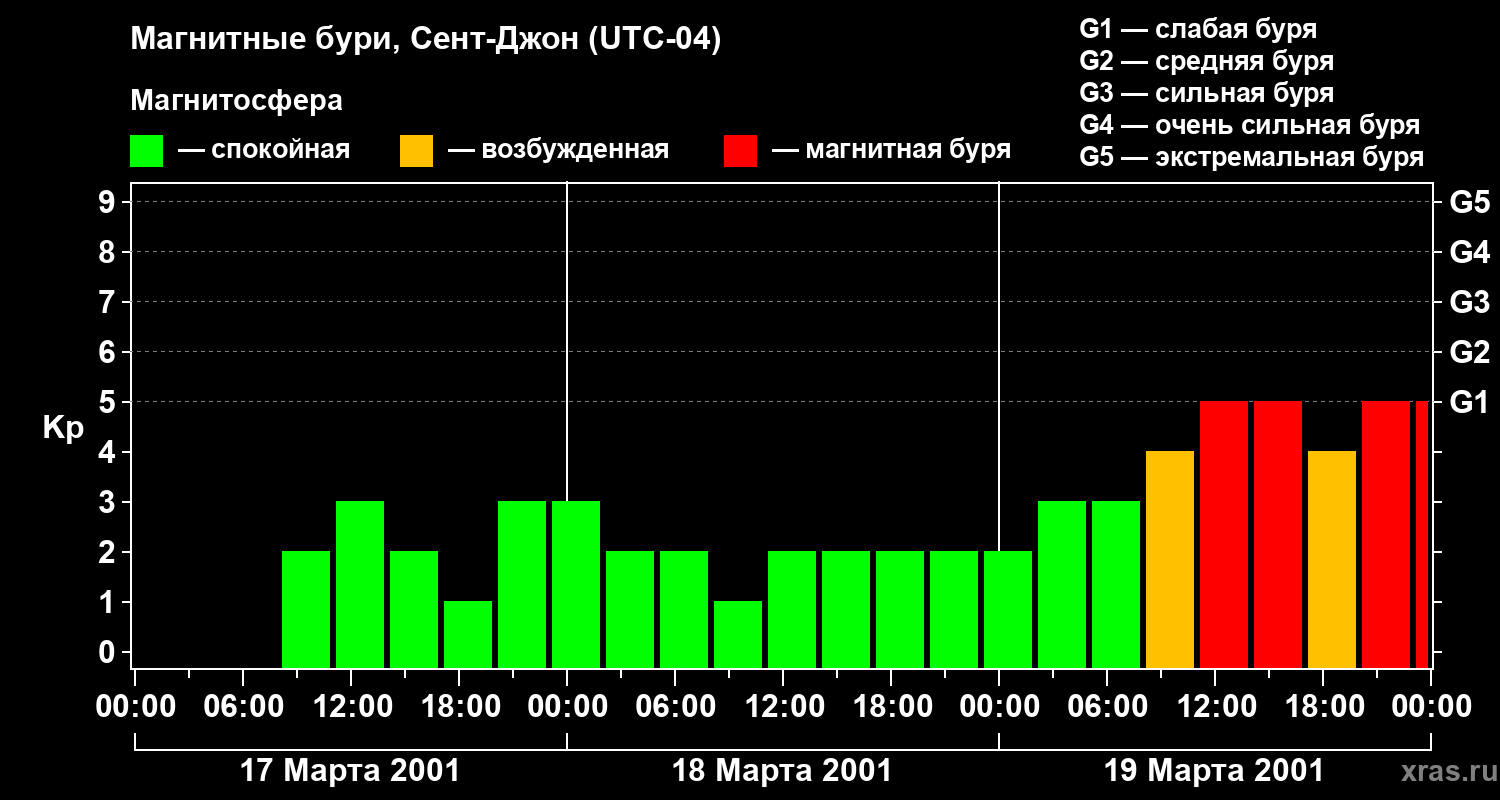 Магнитные бури в Сент-Джоне — 19 марта 2001 года