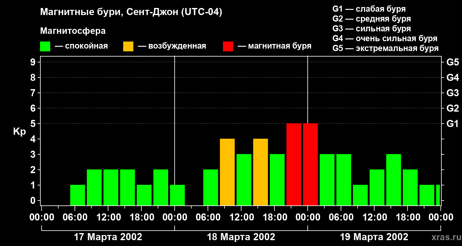 Магнитные бури в Сент-Джоне — 19 марта 2002 года