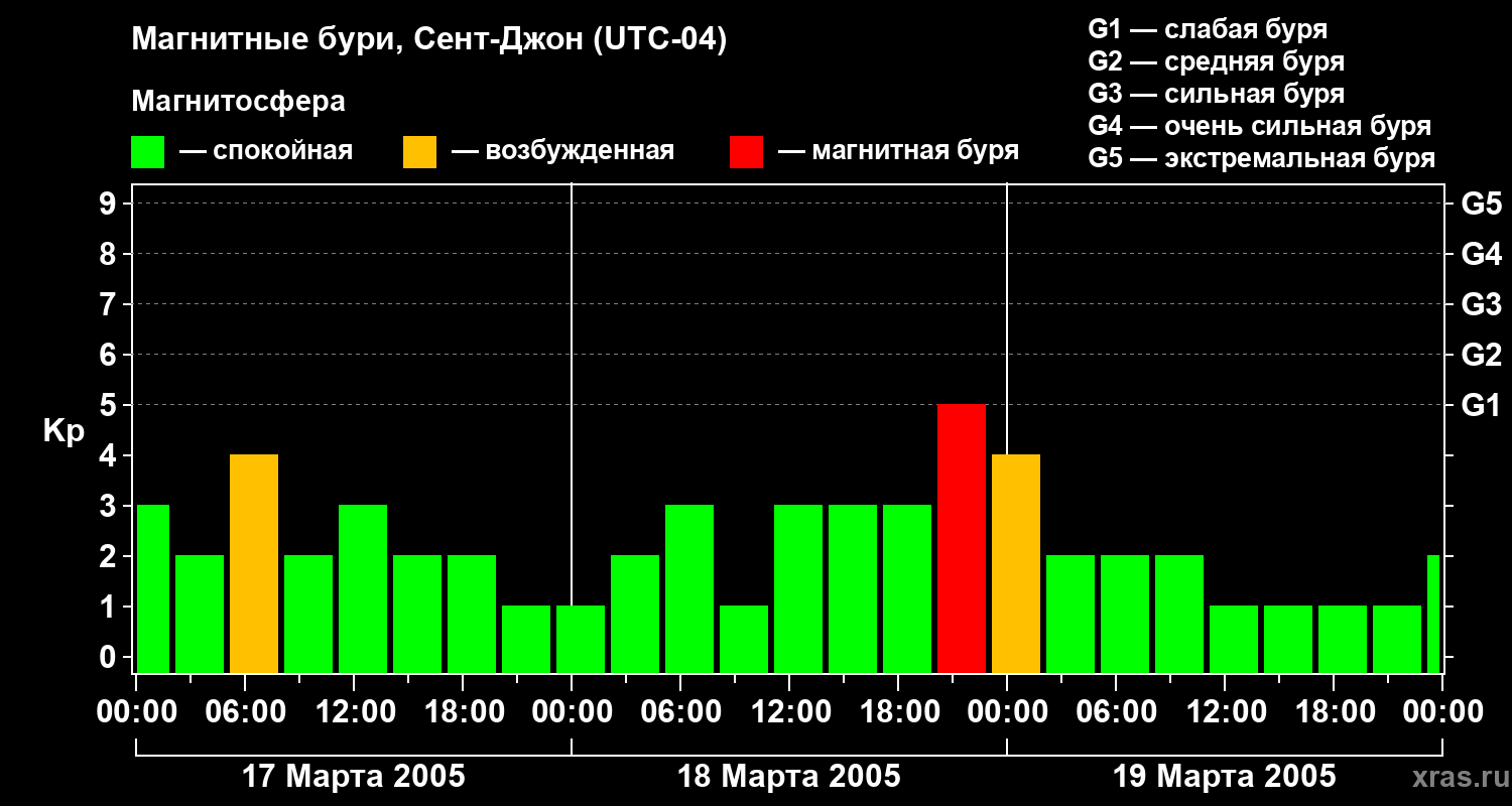 Магнитные бури в Сент-Джоне — 19 марта 2005 года
