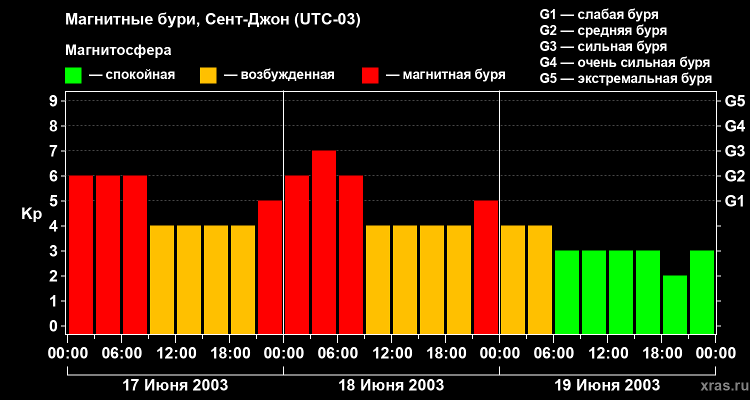 Магнитные бури в Сент-Джоне — 19 июня 2003 года
