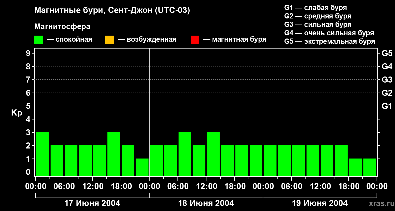 Магнитные бури в Сент-Джоне 19 июня 2004 года