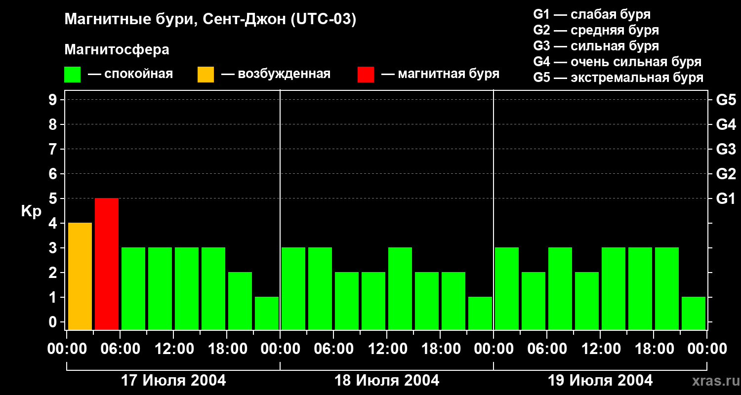 Магнитные бури в Сент-Джоне 19 июля 2004 года