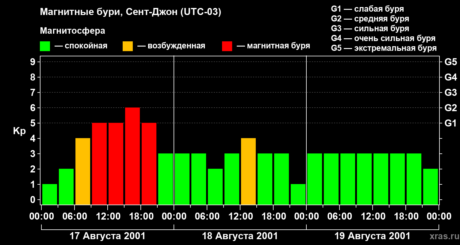 Магнитные бури в Сент-Джоне 19 августа 2001 года