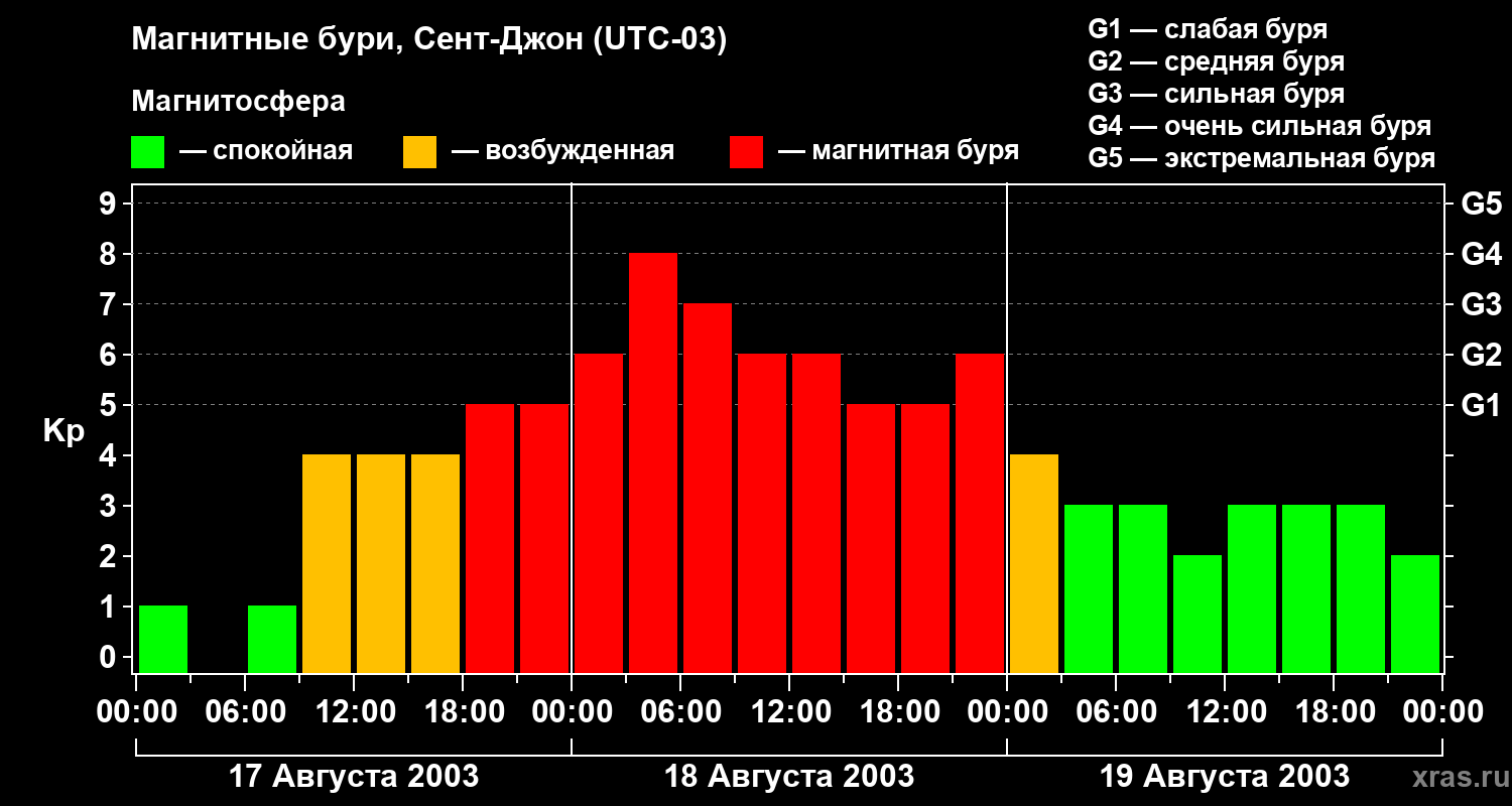 Магнитные бури в Сент-Джоне — 19 августа 2003 года