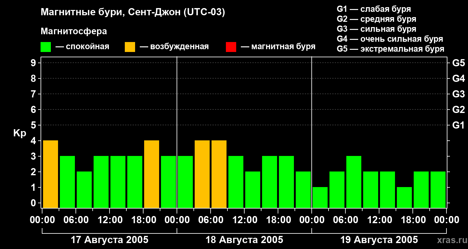 Магнитные бури в Сент-Джоне 19 августа 2005 года