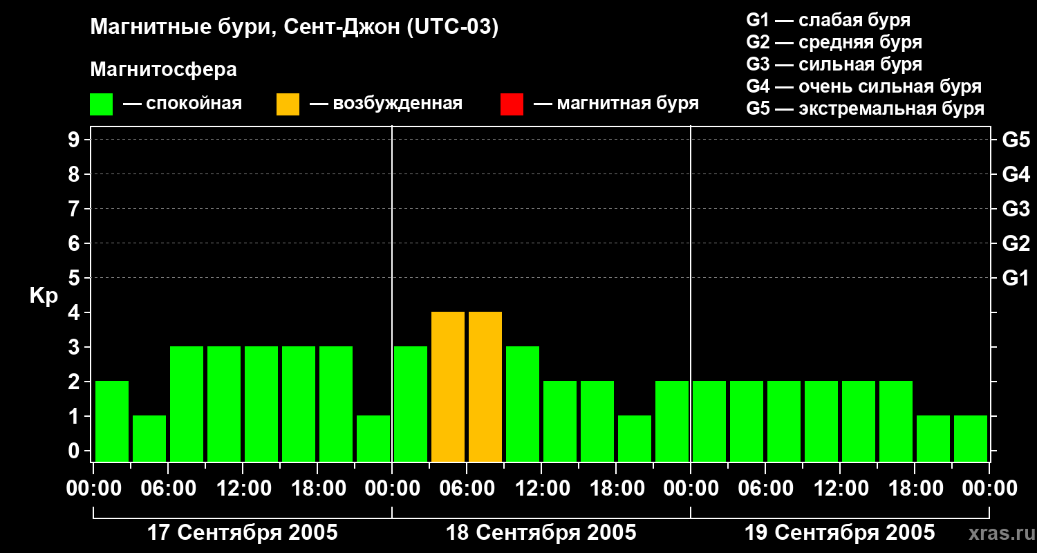 Магнитные бури в Сент-Джоне — 19 сентября 2005 года