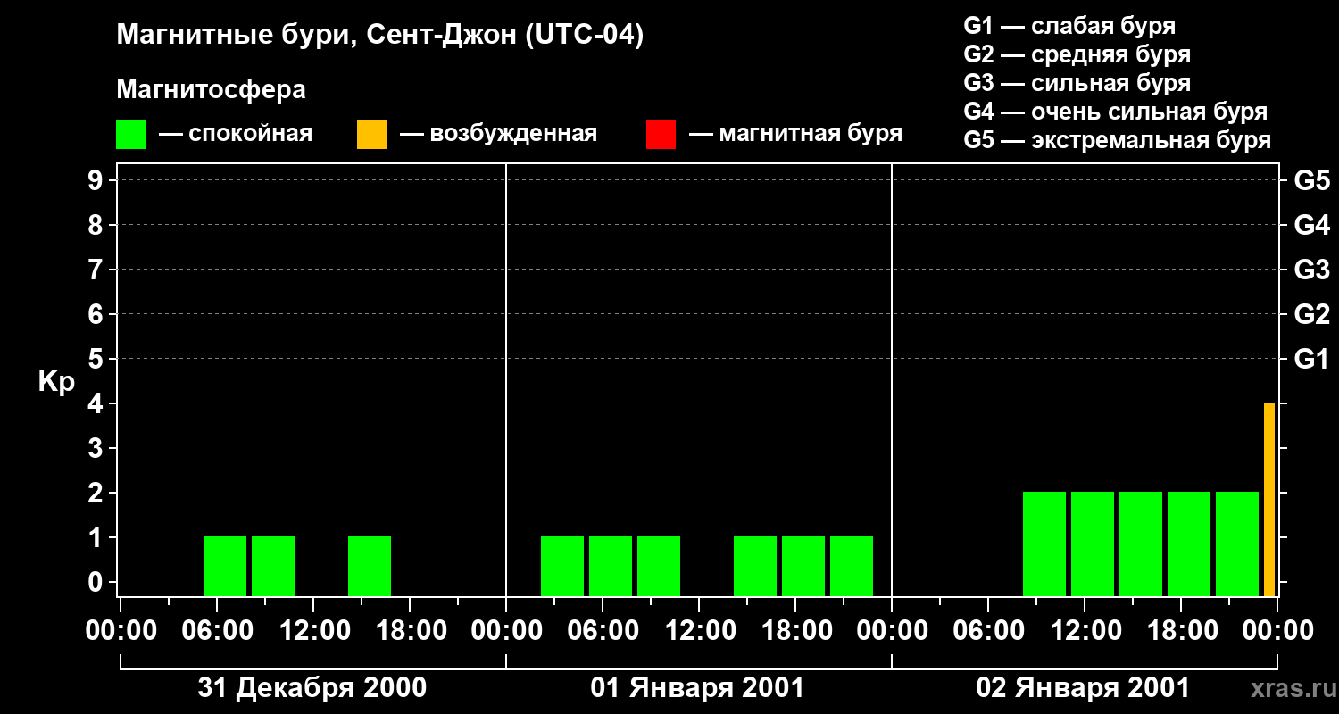 Магнитные бури в Сент-Джоне — 2 января 2001 года