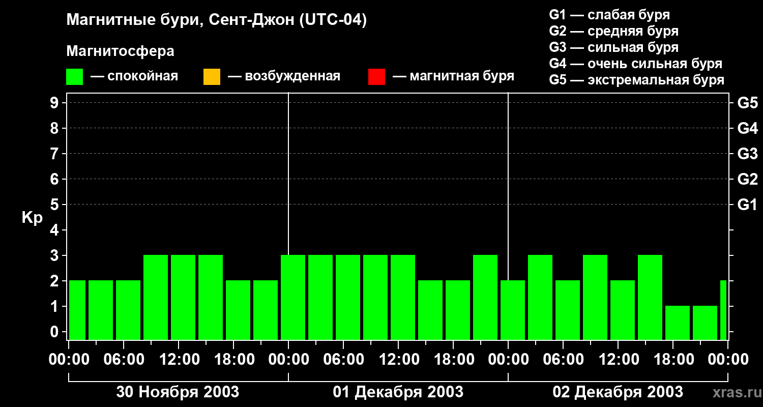 Магнитные бури в Сент-Джоне — 2 декабря 2003 года