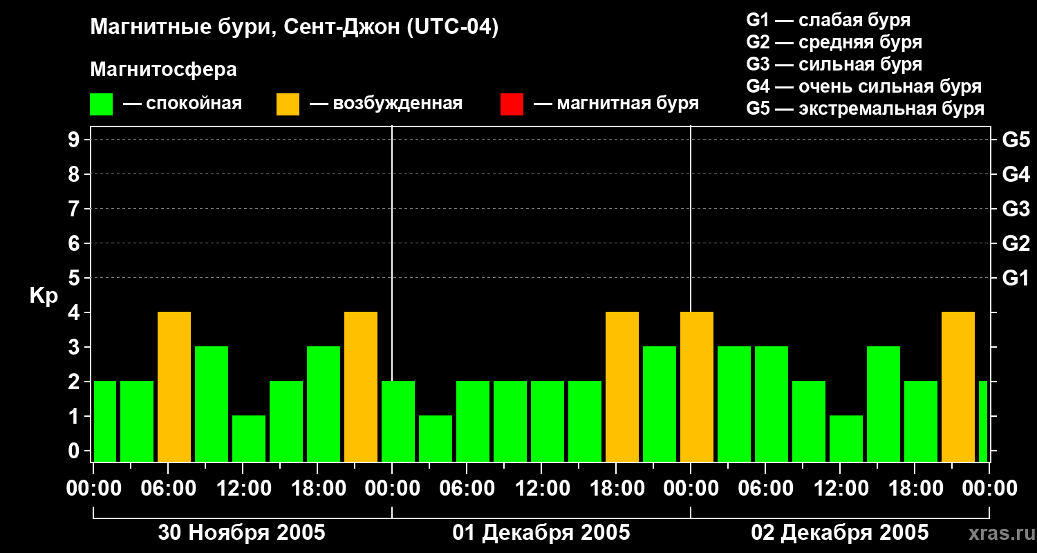Магнитные бури в Сент-Джоне 2 декабря 2005 года