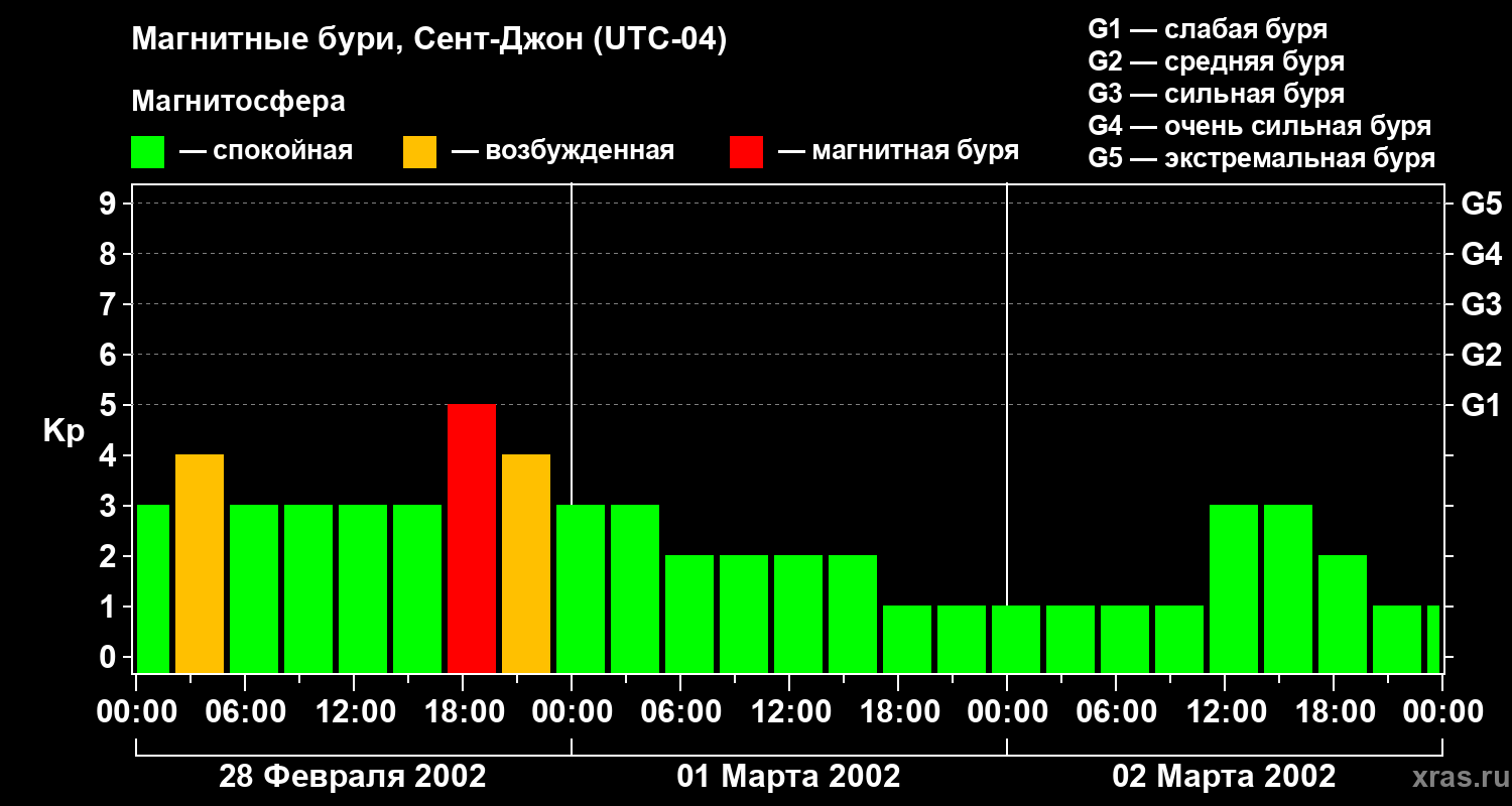 Магнитные бури в Сент-Джоне — 2 марта 2002 года