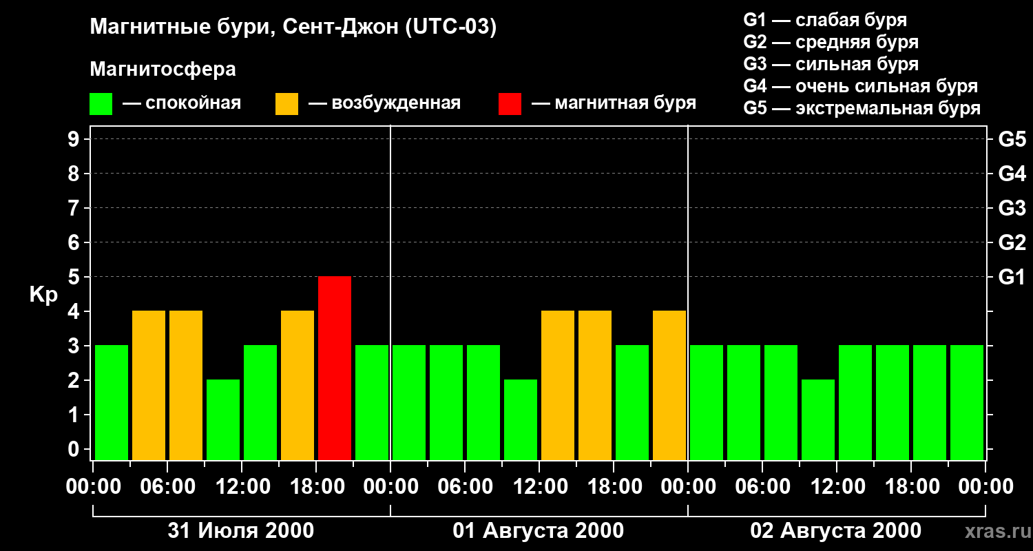Магнитные бури в Сент-Джоне — 2 августа 2000 года