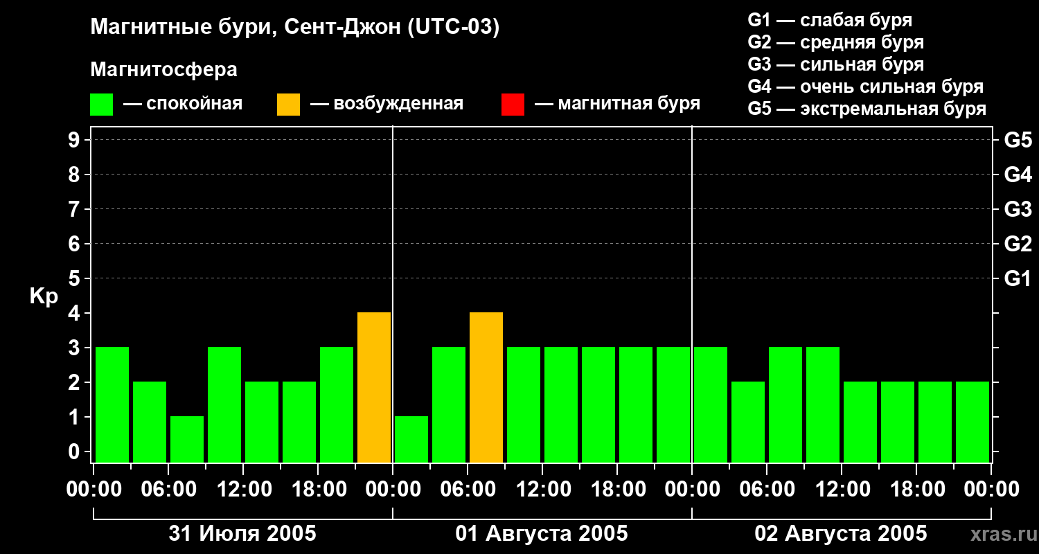 Магнитные бури в Сент-Джоне — 2 августа 2005 года