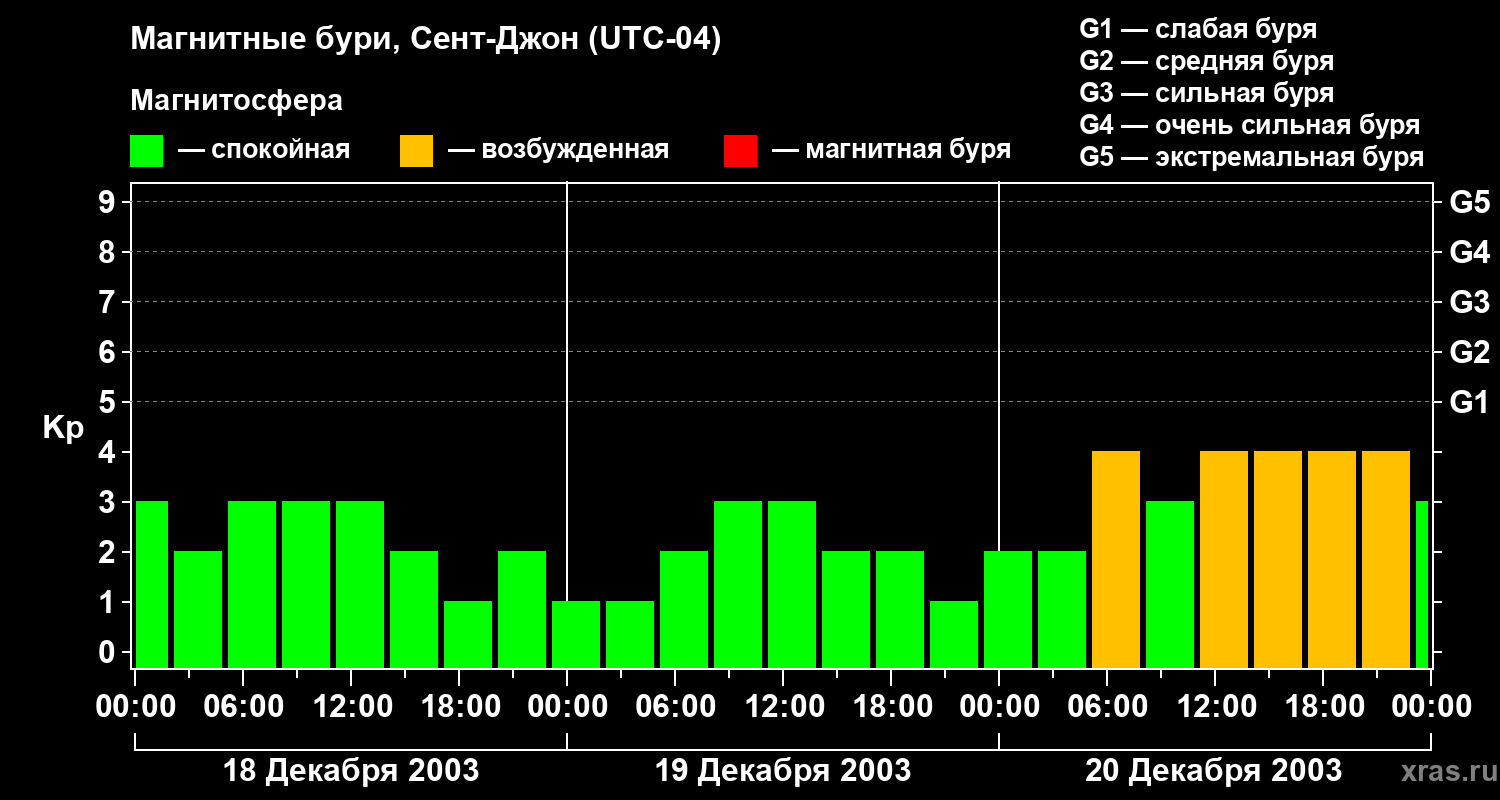 Магнитные бури в Сент-Джоне — 20 декабря 2003 года