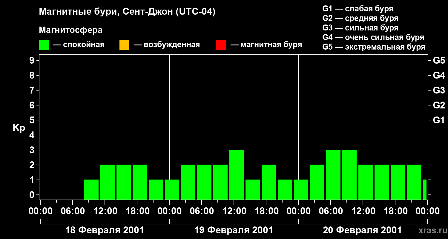 Магнитные бури в Сент-Джоне — 20 февраля 2001 года