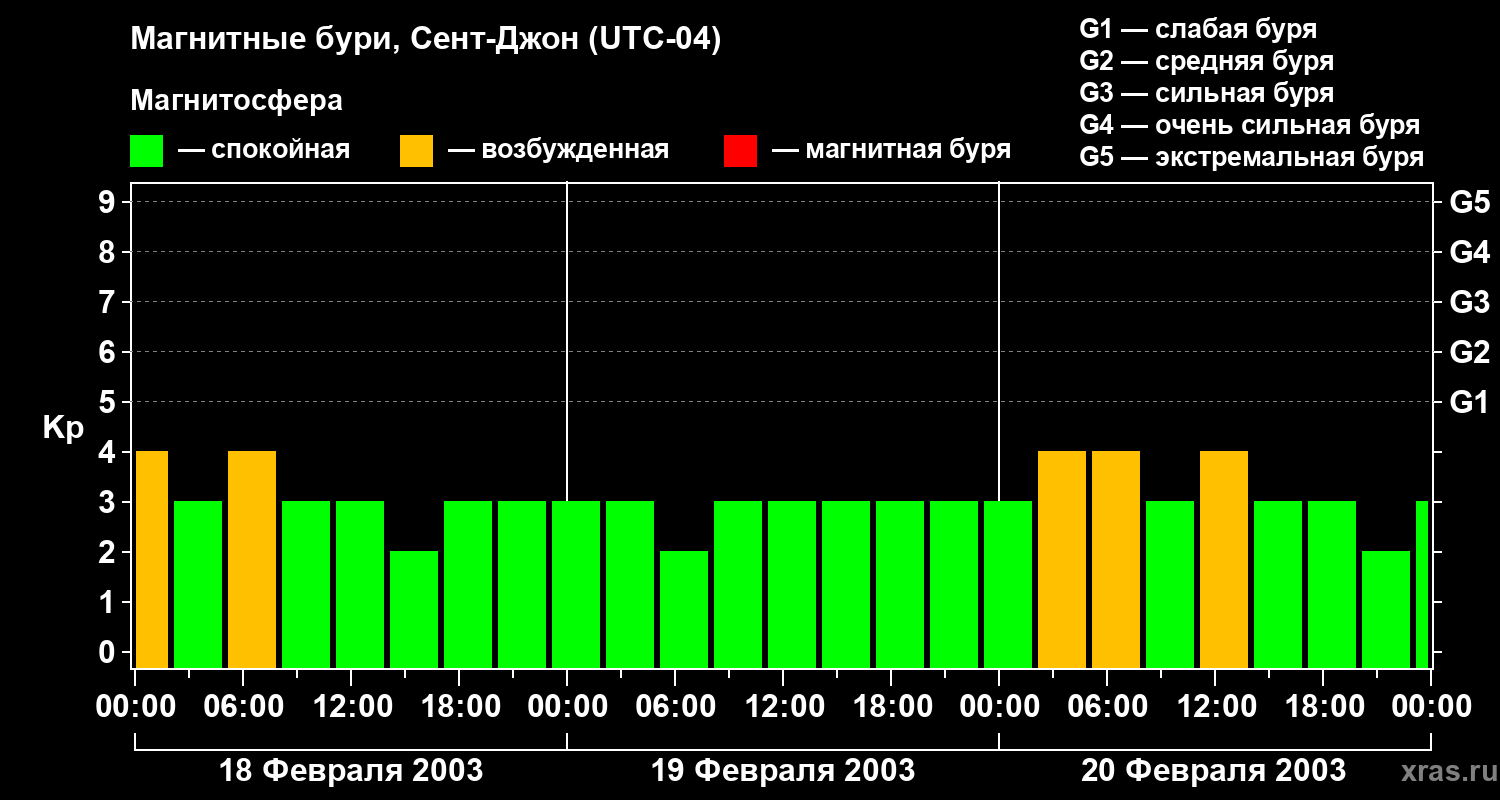 Магнитные бури в Сент-Джоне — 20 февраля 2003 года