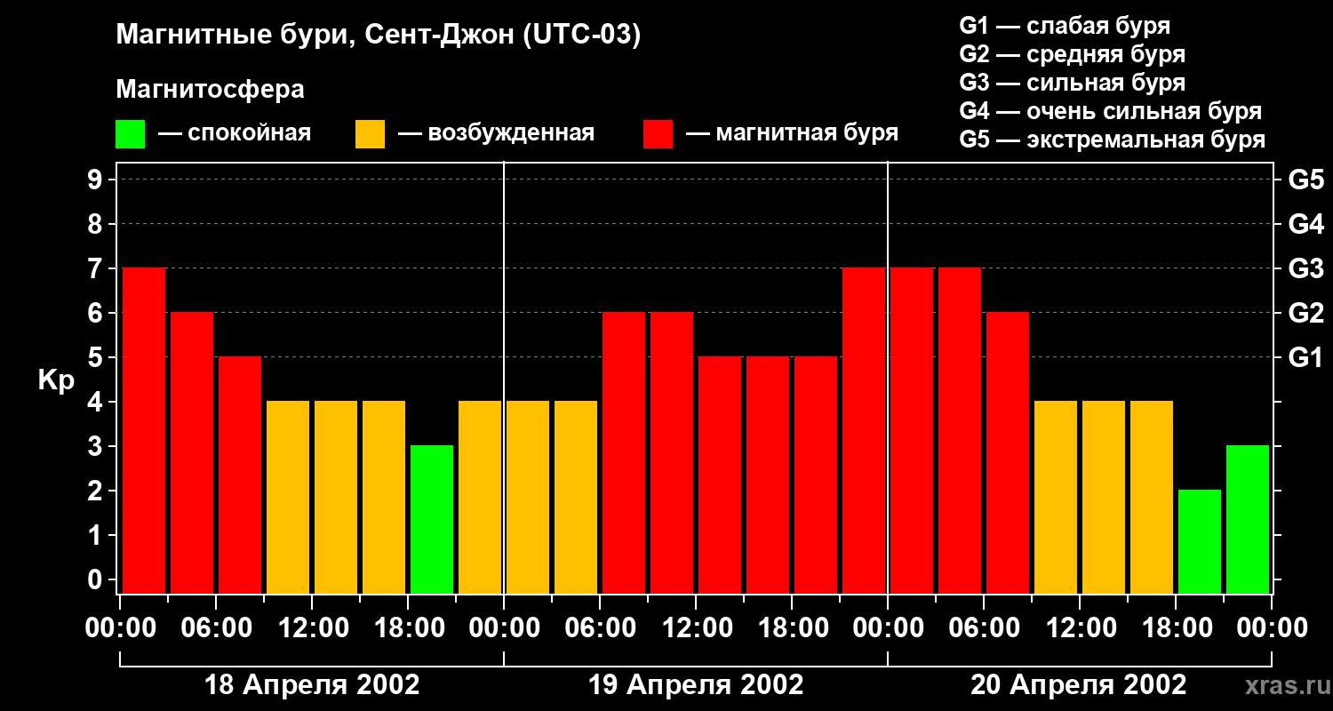 Магнитные бури в Сент-Джоне 20 апреля 2002 года
