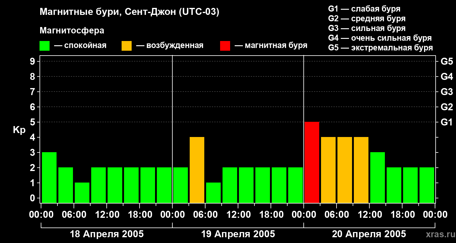 Магнитные бури в Сент-Джоне 20 апреля 2005 года