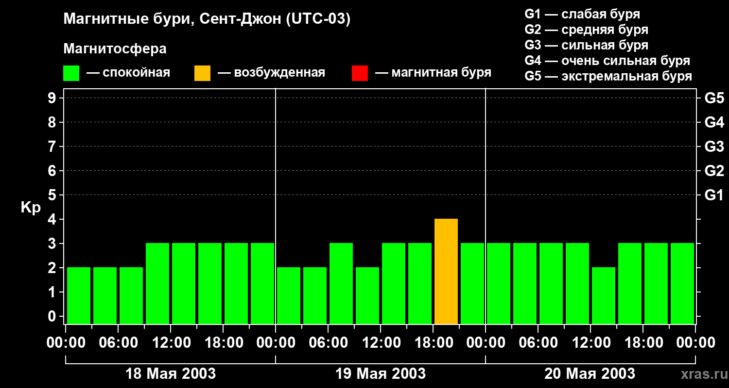 Магнитные бури в Сент-Джоне — 20 мая 2003 года