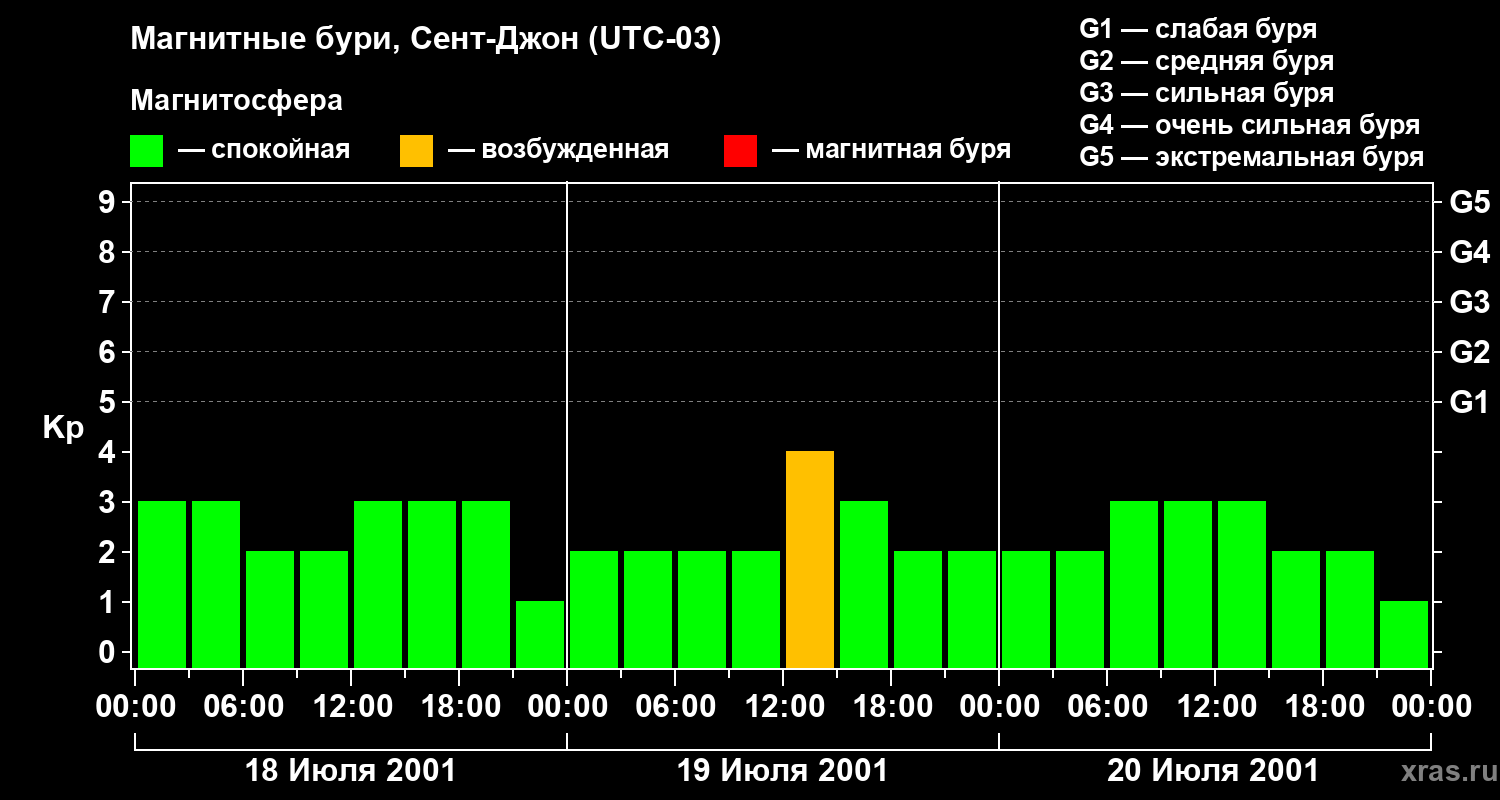 Магнитные бури в Сент-Джоне — 20 июля 2001 года