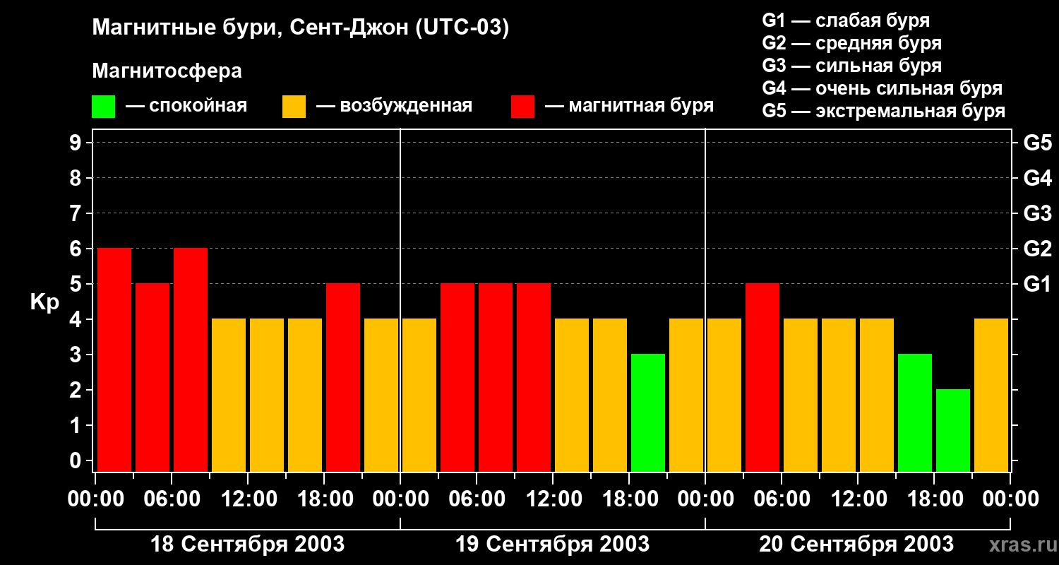 Магнитные бури в Сент-Джоне — 20 сентября 2003 года