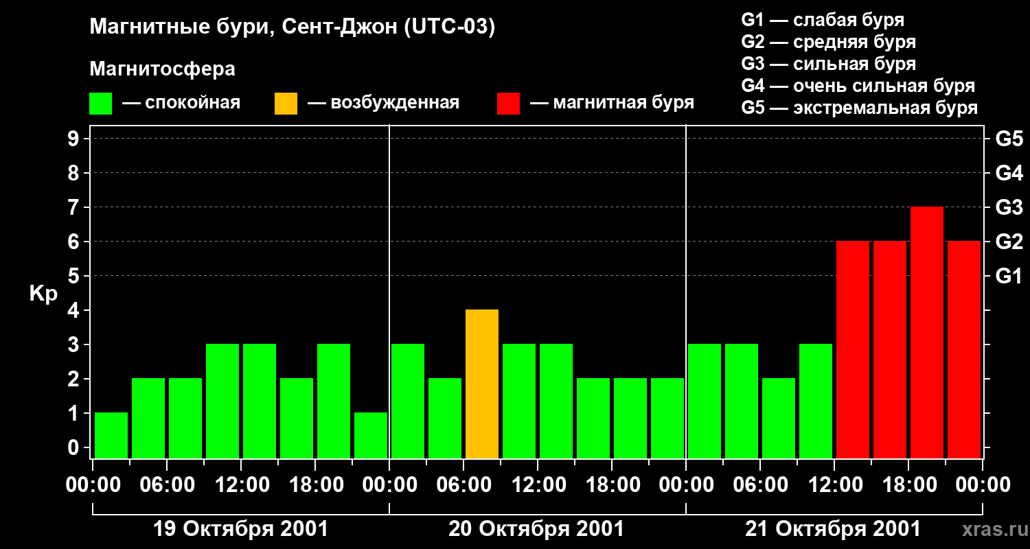 Магнитные бури в Сент-Джоне 21 октября 2001 года