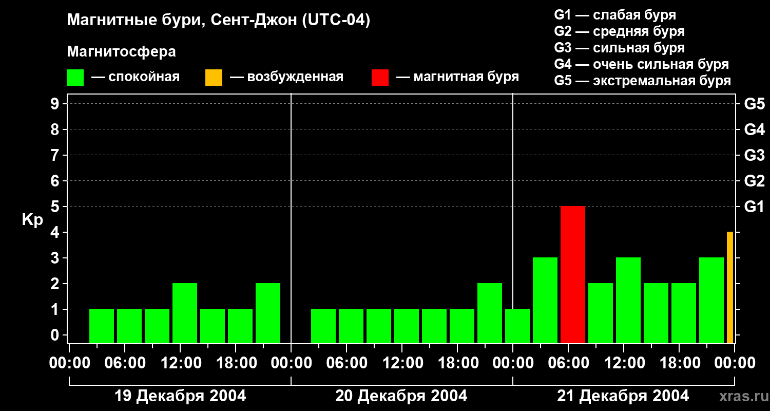 Магнитные бури в Сент-Джоне — 21 декабря 2004 года