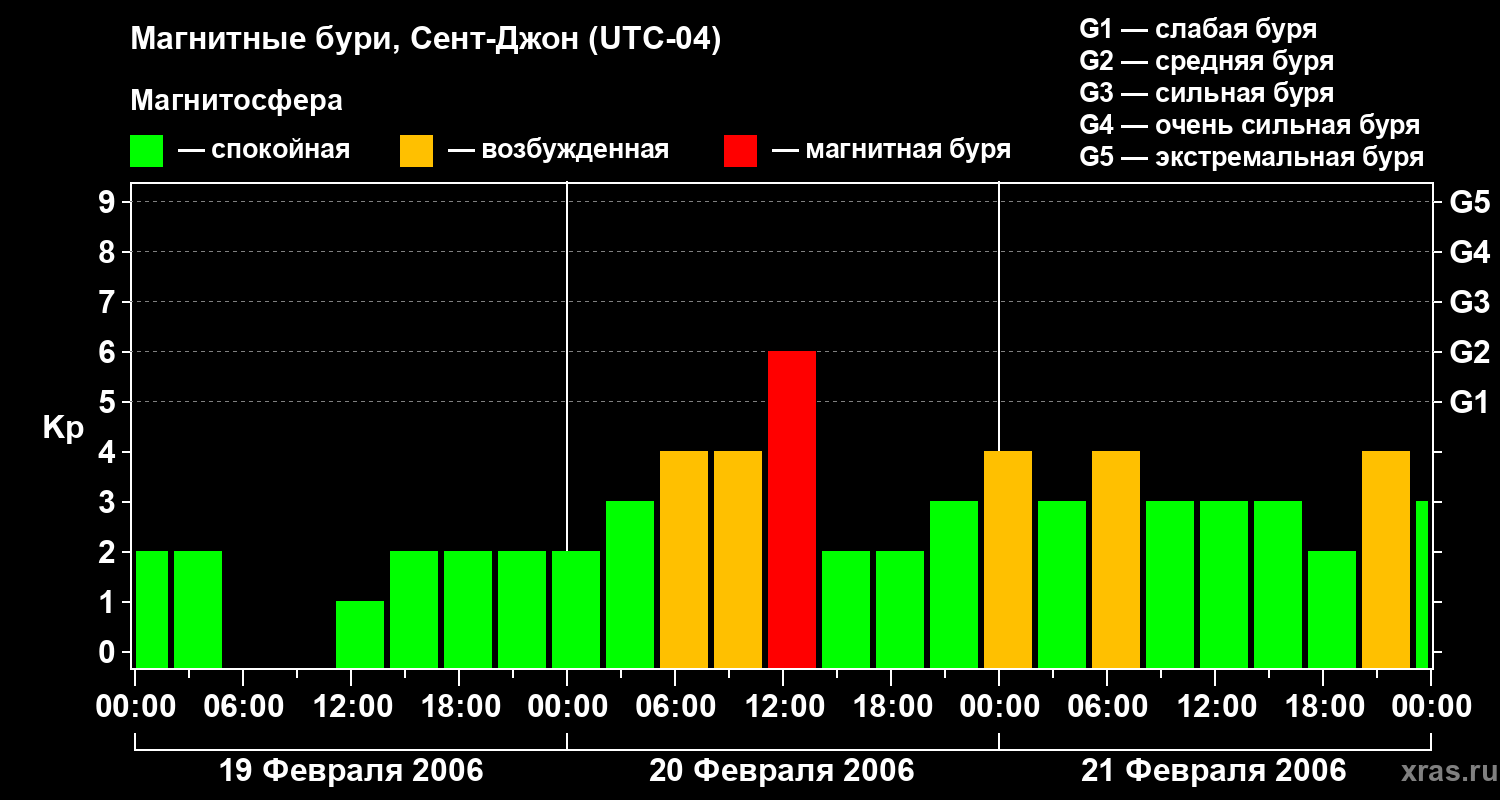 Магнитные бури в Сент-Джоне — 21 февраля 2006 года